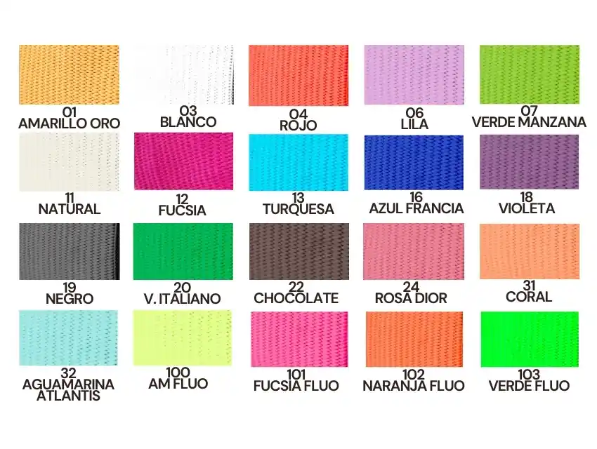 Elástico fabricado con fibras de poliéster que ofrece durabilidad, resistencia al desgaste.