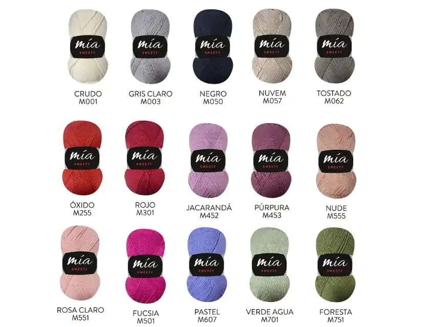Nuevo HILO MIA SWEETY 50% VISCOSA 28% POLIESTER 22% NYLON 10 OV X 100GRSCódigo: 5580Presentación Paquete(s)Observación Aguja 5 a 6