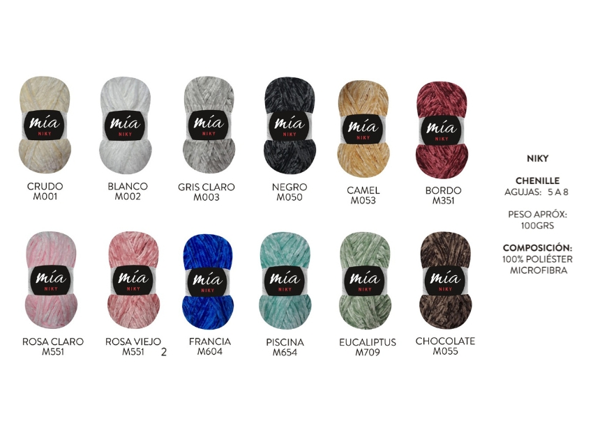 LANA 100% POLIESTER MICROFIBRA MIA HILADOS NIKY CHENILLE X 5 OV X 100GRS