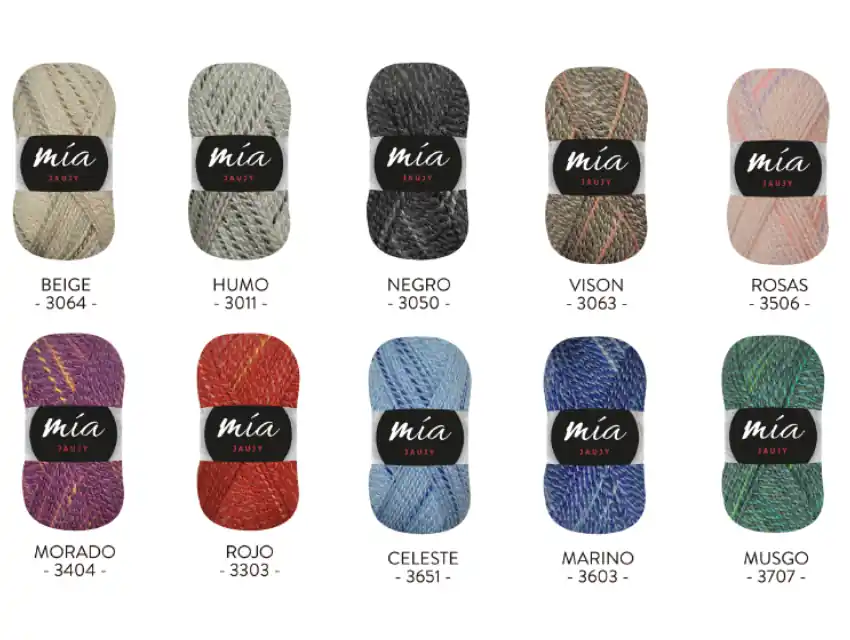 Lana Mia Jaujy, disponible en una hermosa variedad de colores. Perfecto para prendas de vestir, para decoración o artesanías.