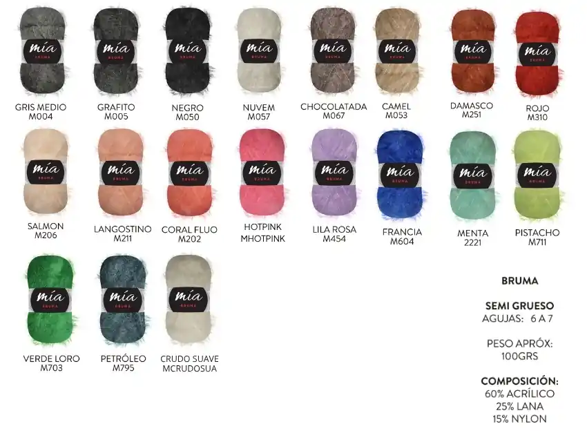 Lana Mia Bruma, disponible en una hermosa variedad de colores. Perfecto para prendas de vestir, para decoración o artesanías.