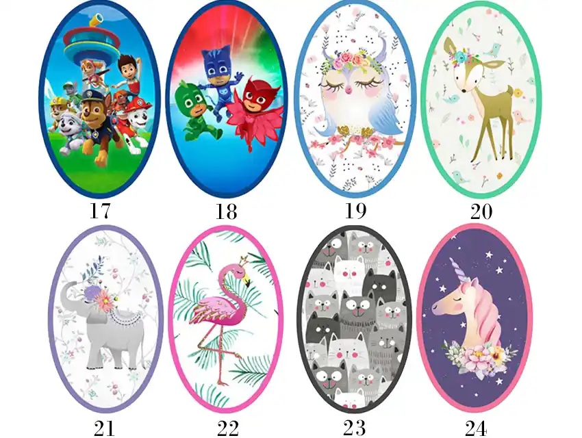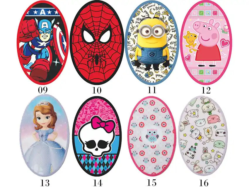 Pitucones pequeños con estampado infantil, ideales para decorar o reforzar prendas de niños de forma rápida y práctica
