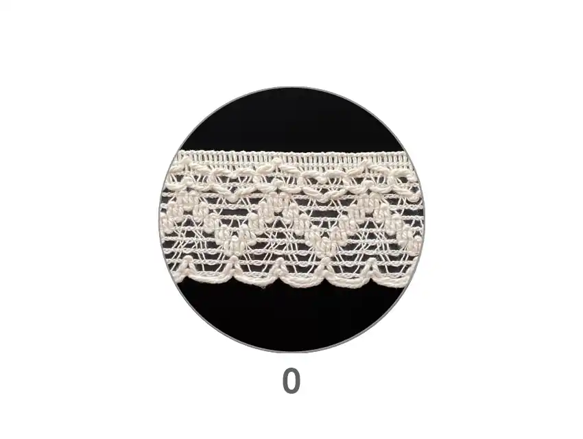Es una puntilla delicada y decorativa, ideal para adornar ropa, manteles y proyectos de costura